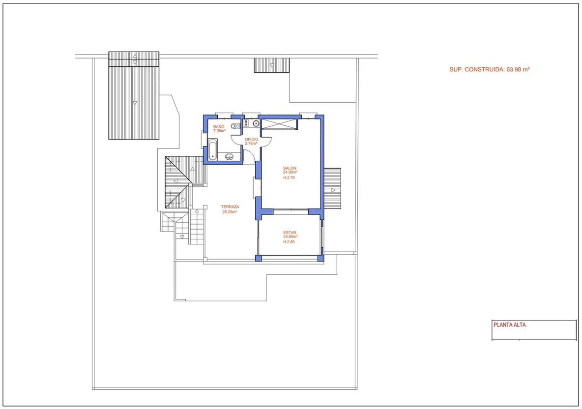 De bovenverdieping (ca. 72 m²) is bereikbaar via een buitentrap. Deze omvat een ruime hoofdslaapkamer met toegang tot een overdekt terras met glas, dat is omgetoverd tot een ontspannende zithoek met prachtig uitzicht op zee. Ook is er een kitchenette met toegang tot een groot open terras – perfect om buiten te eten terwijl u geniet van de zeebries en de zonsondergang.