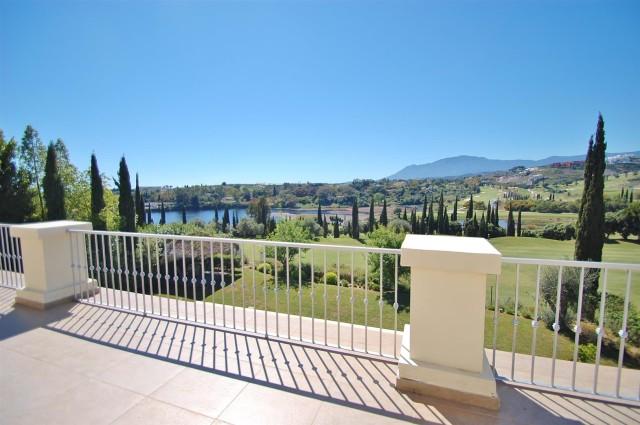 Elegante Frontline Golf Villa te koop in Benahavís. Deze prachtige eerstelijns golfvilla op het westen kijkt uit over Los Flamingos Golf en biedt een spectaculair uitzicht op de golfbaan, het meer en de bergen.