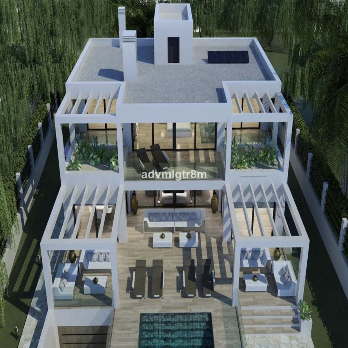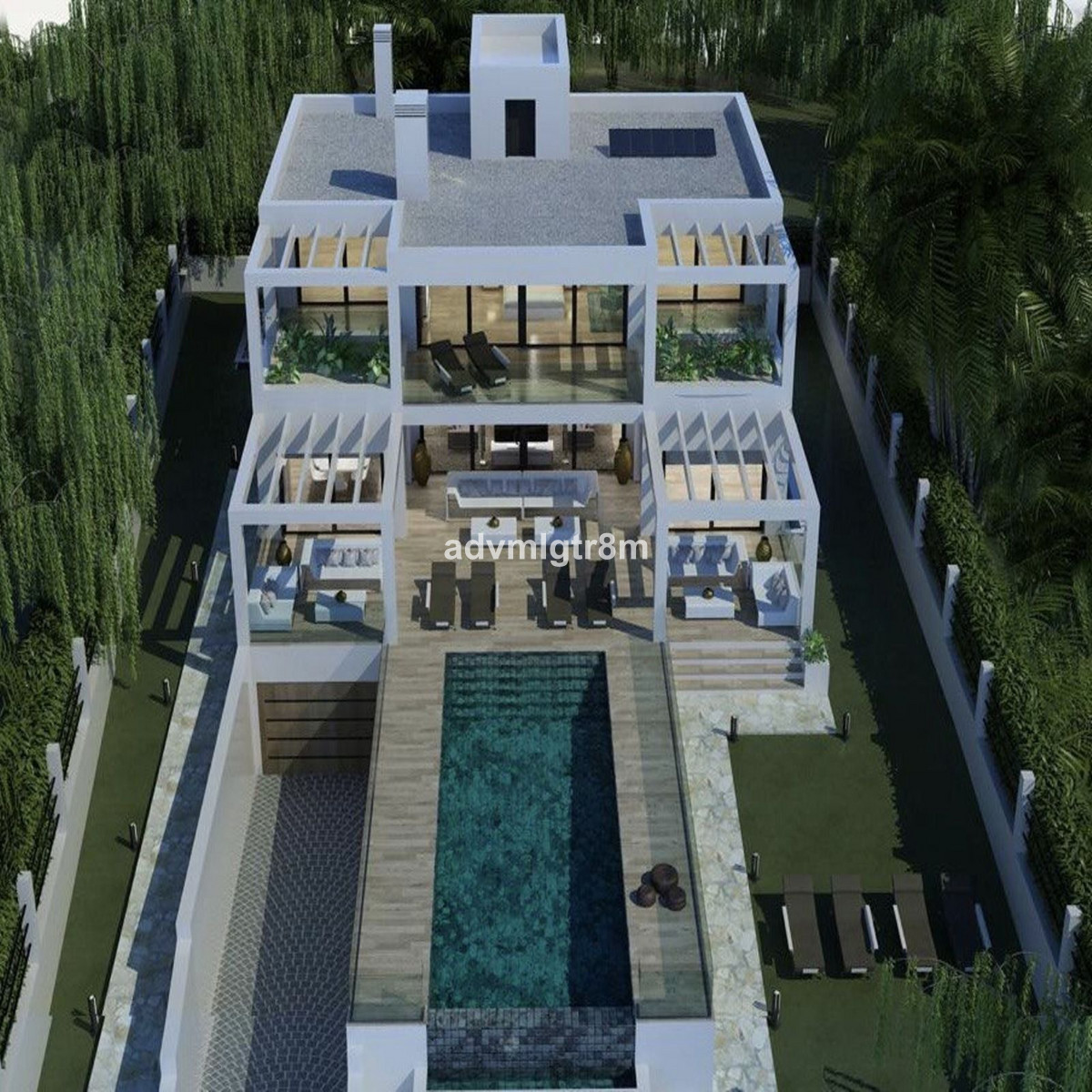 It has more than 450 square meters of useful surface, they have been perfectly designed to satisfy the most demanding tastes, including 6 bedrooms with en-suite bathrooms, large closets, air conditioning system for greater comfort and energy efficiency, a modern open kitchen.