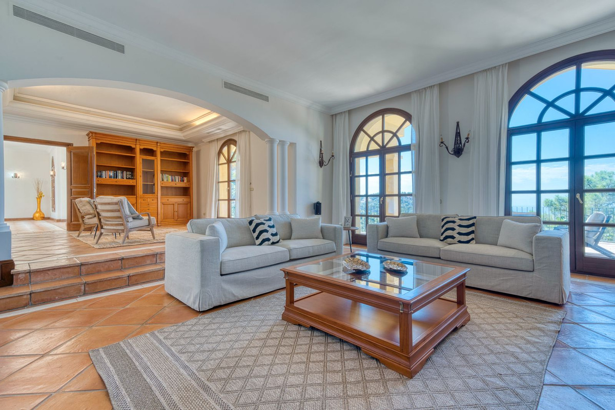 Stap in tijdloze luxe met deze magnifieke en uiterst privévilla met zes slaapkamers, gelegen op een van Europa's meest prestigieuze privélandgoederen. Gelegen op een ruim perceel van 6.173 m² biedt deze indrukwekkende woning volledige privacy, een adembenemend uitzicht op de Middellandse Zee en de omliggende bergen, en meer dan 970 m² aan verfijnde woonoppervlakte. Een ruime oprit leidt naar de statige entree en een ondergrondse garage voor drie auto's. Binnen vult een opvallend centraal atrium de woning met natuurlijk licht en vormt een naadloze verbinding tussen de volledig ingerichte keuken, de formele eetkamer en de verdiepte lounge, ontworpen voor zowel elegant entertainment als ontspannen gezinsleven. De begane grond beschikt over drie ruime slaapkamers en suite, en op de benedenverdieping transformeert de woning tot een privé-retraite met een stijlvolle lounge en bar, een tweede keuken, een speelkamer, een fitnessruimte, een sauna, een stoombad en drie extra slaapkamers en suites met directe toegang tot de tuin.