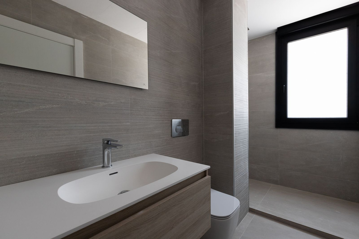 Op de begane grond bevinden zich een slaapkamer met eigen badkamer, een lichte en ruime woonkamer, een open keuken die aansluit op de woonkamer en een groot terras met prachtig open uitzicht en toegang tot het zwembad en de tuin. Op de eerste verdieping vinden we nog eens drie slaapkamers, allemaal met een eigen badkamer, en toegang tot het grote solarium om van het beste uitzicht te genieten.