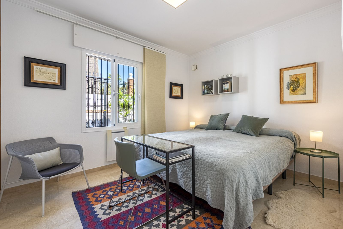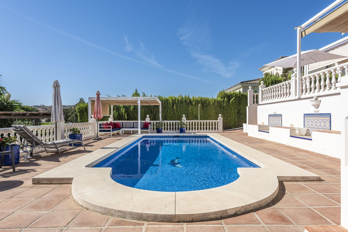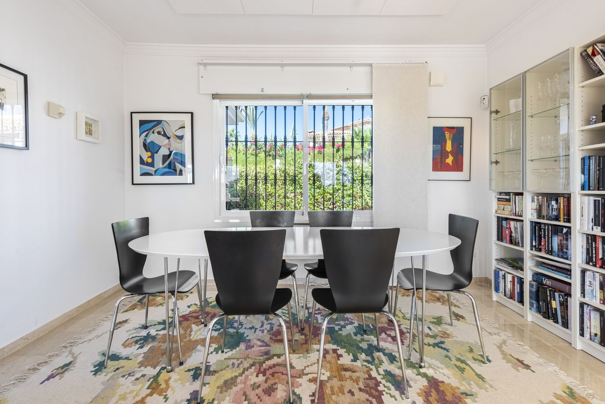 Welkom in deze prachtige gelijkvloerse villa, prachtig gelegen in de gewilde wijk Mijas Golf. Hier geniet u van een open uitzicht op de weelderige tuin en het groen van de golfbaan – een oase van rust waar rust en vogelgezang een werkelijk unieke sfeer creëren.