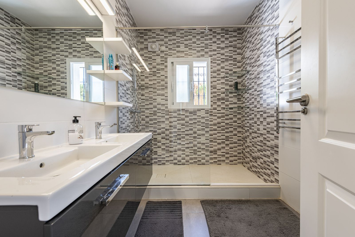 De villa is goed uitgerust met veel opbergruimte, inbouwkasten, elektrische rolluiken, airconditioning in elke kamer en ingebouwde ventilatoren in de badkamers.