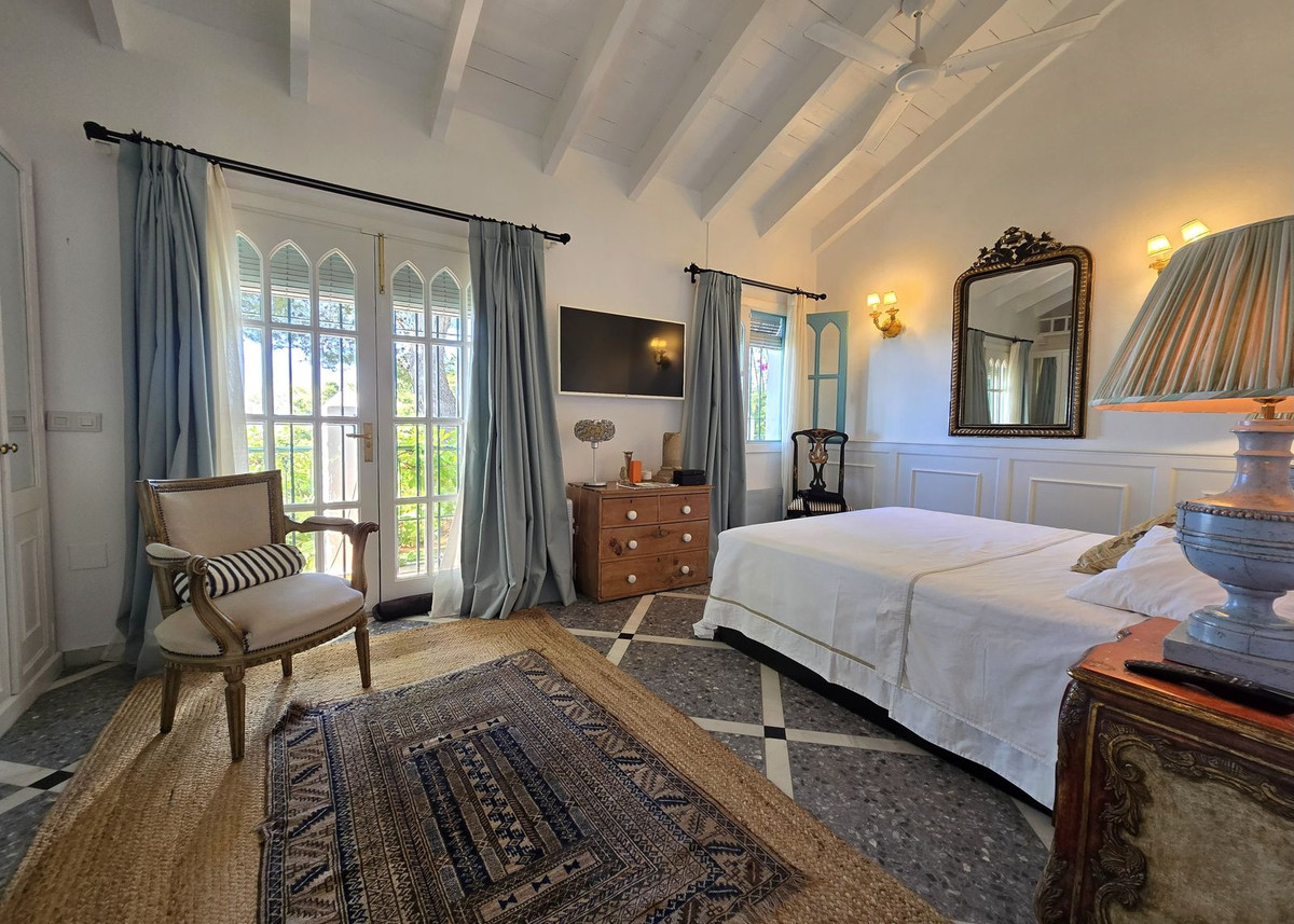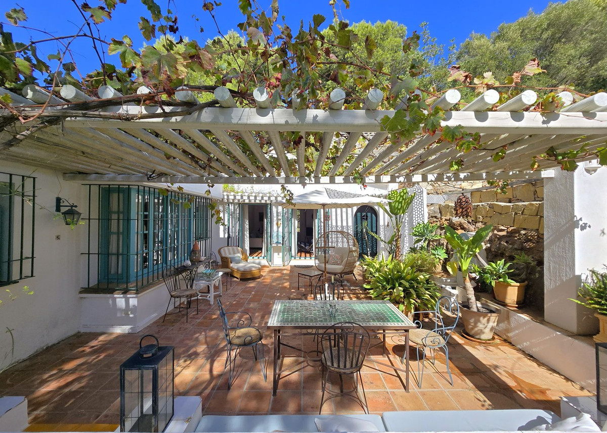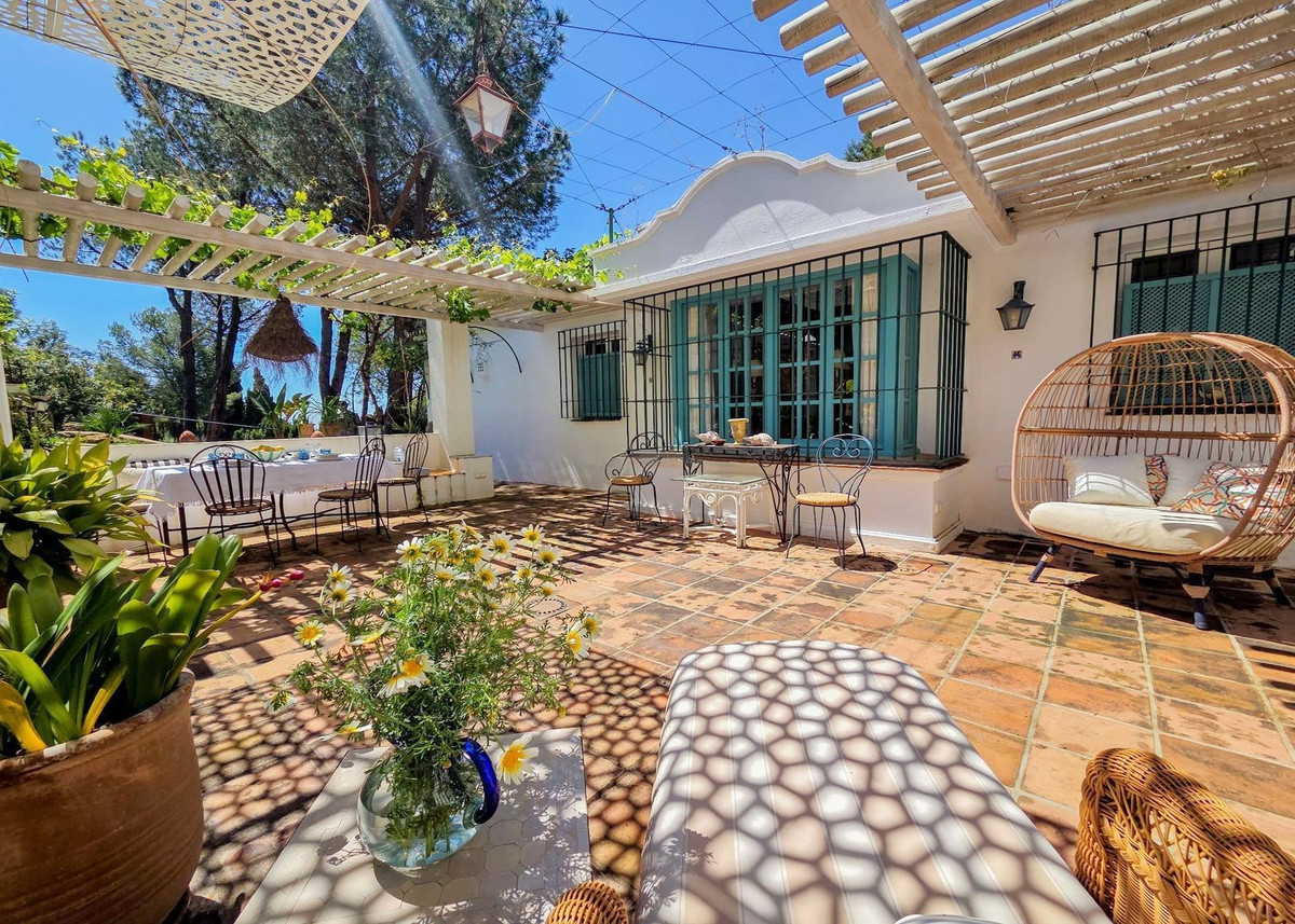 Deze charmante gelijkvloerse villa in cortijo-stijl ligt te midden van geurige pijnbomen in de prestigieuze wijk Montúa, net boven Marbella aan de voet van de majestueuze berg La Concha. De villa combineert op perfecte wijze het traditionele Andalusische karakter met modern comfort.