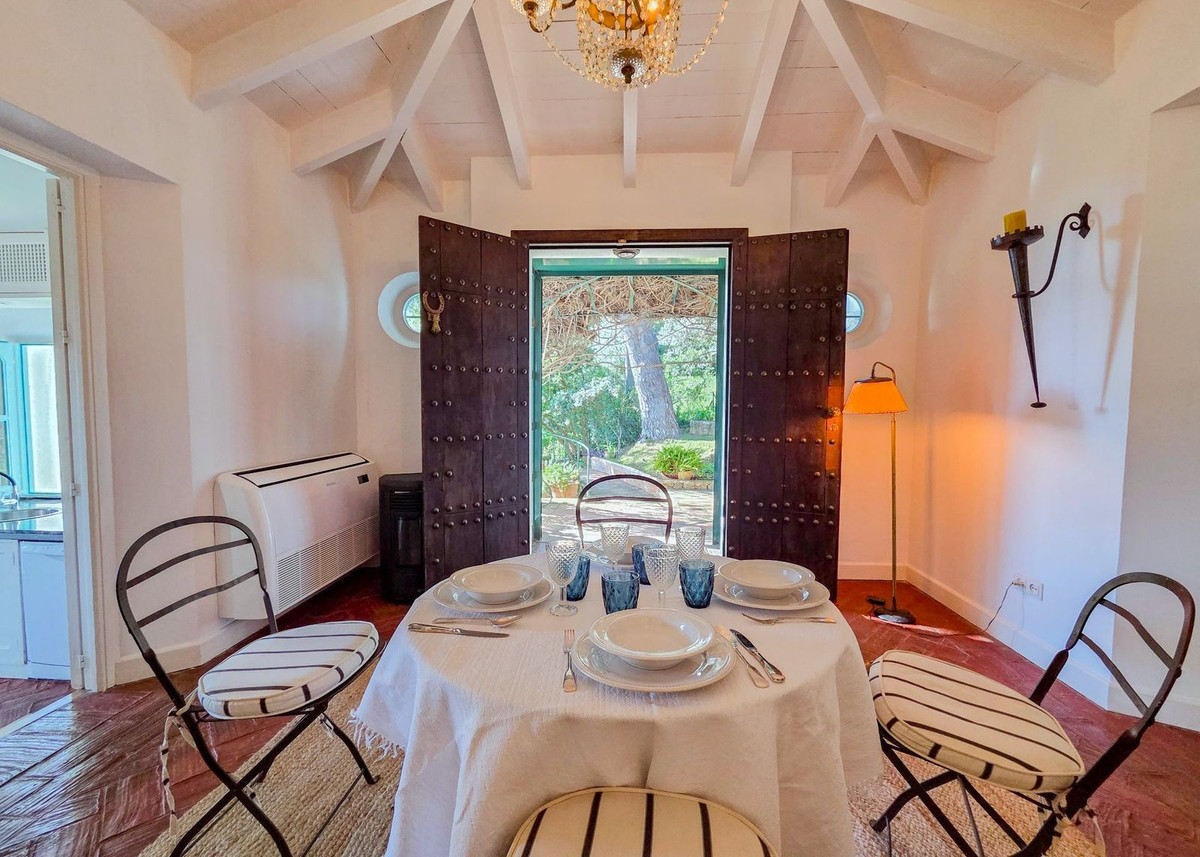 In het hart van het huis ligt de betoverende centrale binnenplaats – een waar paradijs in de buitenlucht. Pergola's versierd met klimplanten creëren een schaduwrijke zomerse eethoek, ideaal voor onvergetelijke avonden, terwijl een gezellige zithoek bij de fontein uitnodigt om te ontspannen en te genieten van de rustgevende geluiden van de natuur.