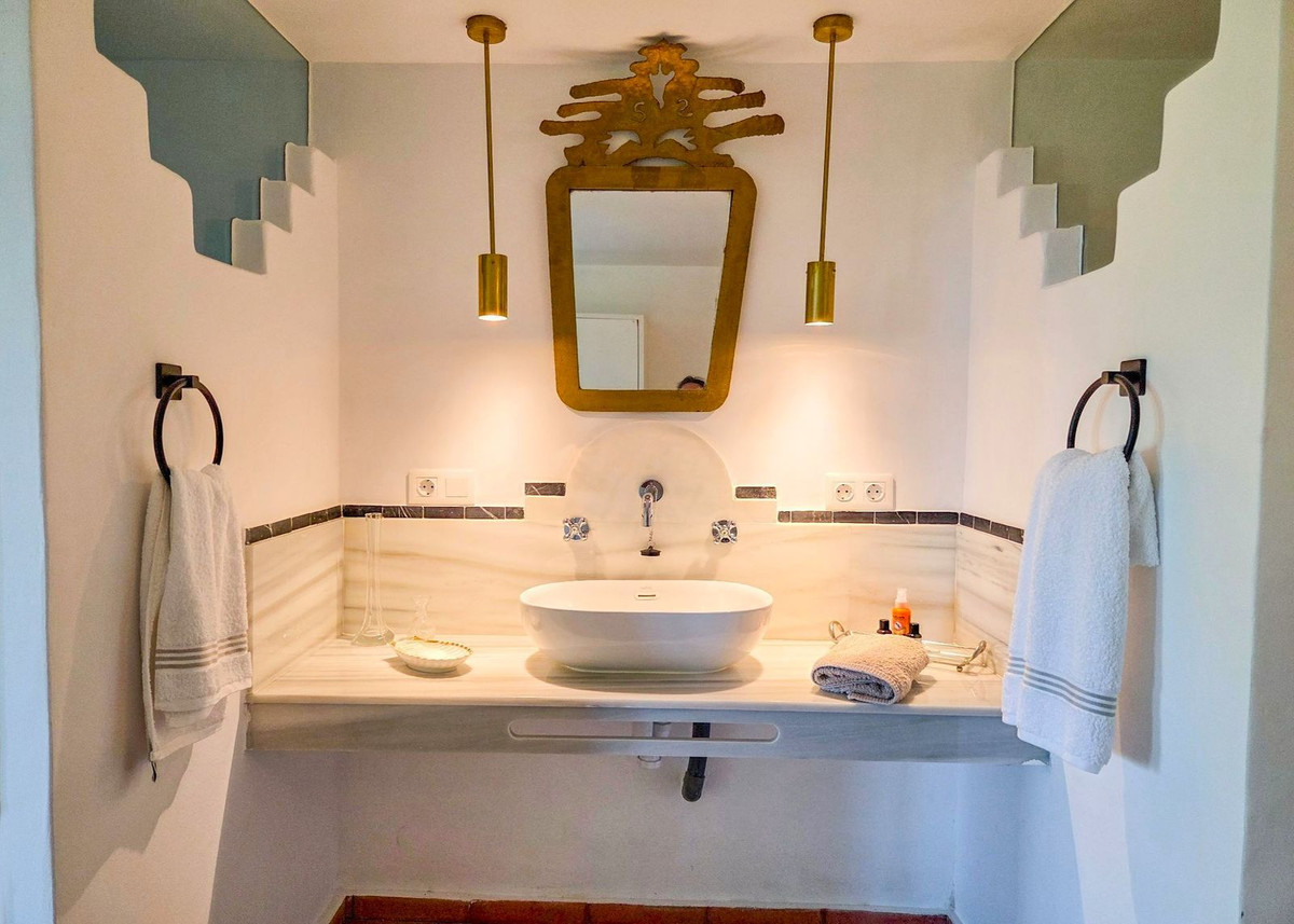 De villa beschikt over drie ruime slaapkamers, elk met een eigen badkamer, terwijl de master suite ook een eigen zithoek heeft. Op de begane grond bevindt zich een zelfstandig appartement dat gasten alle comfort en onafhankelijkheid biedt, compleet met een eigen keuken en terras.
