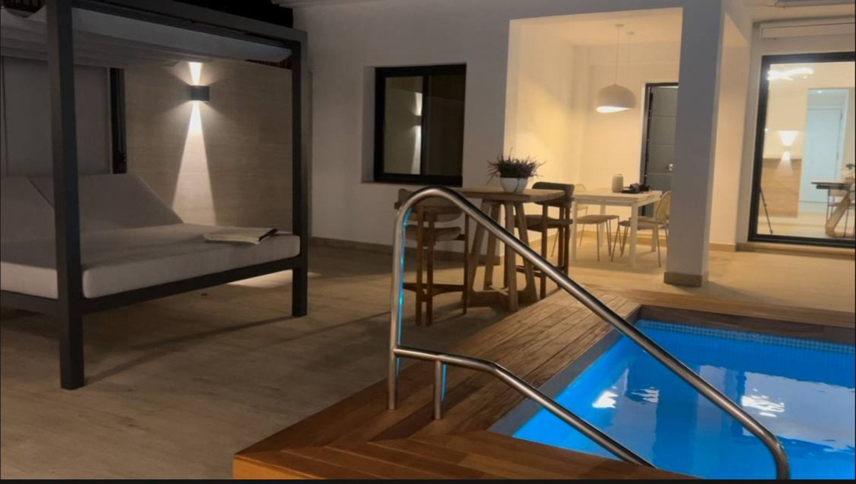 Buiten beschikt de accommodatie over een volledig gerenoveerd, verwarmd zwembad, ideaal voor het hele jaar door. Er is ook een barbecueplek en een chill-outruimte met een Balinees bed – perfect om te ontspannen en te genieten van het mediterrane klimaat.
