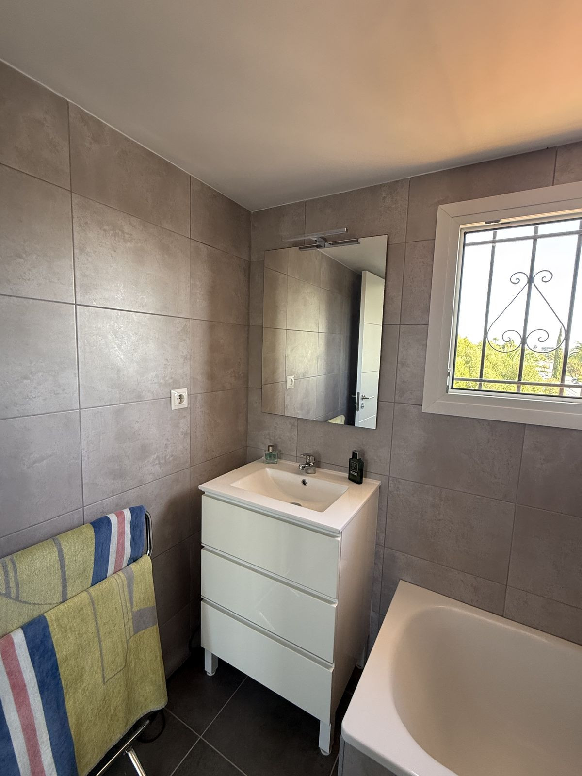 Op de begane grond vindt u een open keuken, woon- en eetkamer met toegang tot een zeer privé overdekt terras, ideaal voor zomeravonden. Vanuit de eetkamer heeft u via de gang toegang tot de logeerkamer en de badkamer met bad. De logeerkamer heeft een zeer ruime tweepersoonskamer (momenteel ingericht met twee eenpersoonsbedden). De slaapkamer heeft ook ingebouwde kasten en airconditioning.