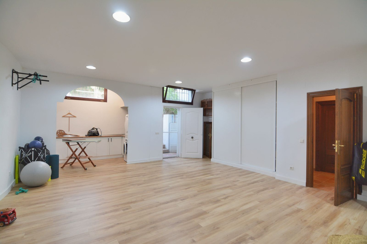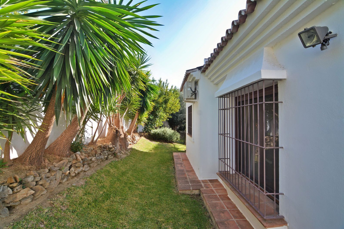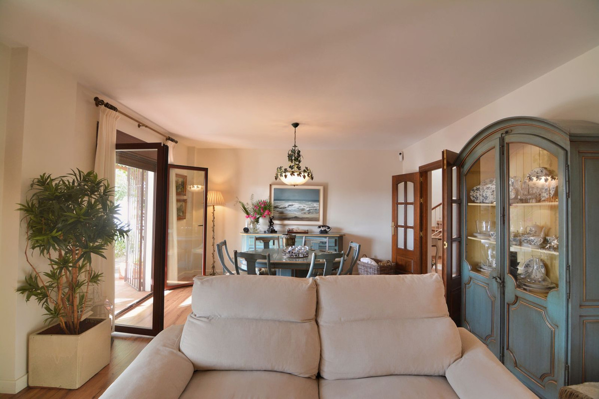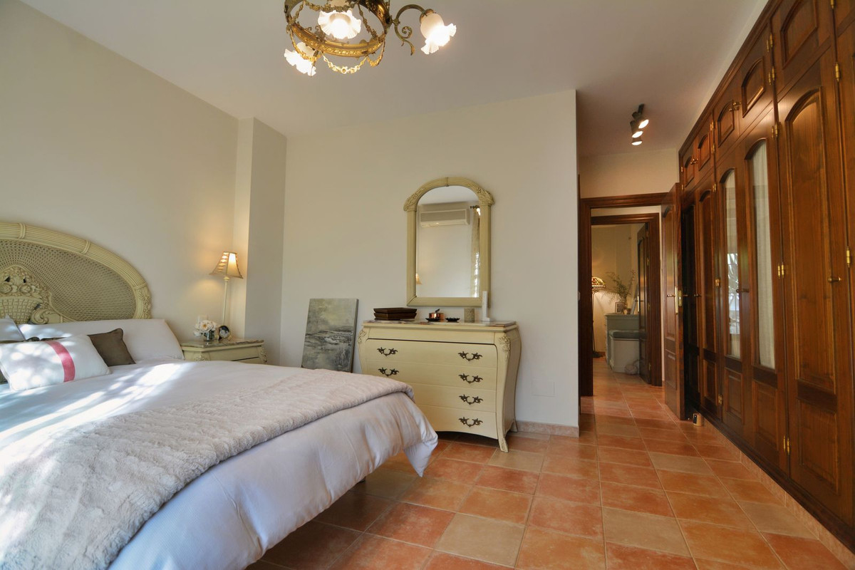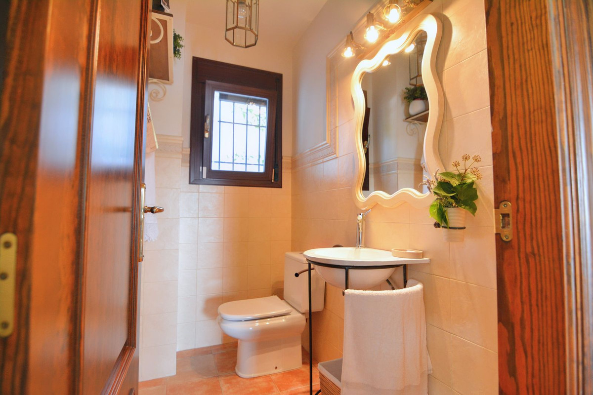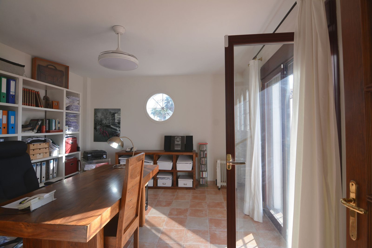 De woning staat op een perceel van 858 m² met een volgroeide tuin en een privézwembad, perfect om te genieten van het zonnige klimaat van de Costa del Sol. Op de begane grond vindt u een ruime en lichte woonkamer met directe toegang tot de overdekte veranda, waar u heerlijk kunt ontspannen en buiten kunt zitten. De aparte keuken is ruim en functioneel, met toegang tot een charmant terras aan de achterzijde, ideaal voor een ontbijt in de zon. Op deze verdieping bevindt zich ook een gastentoilet.