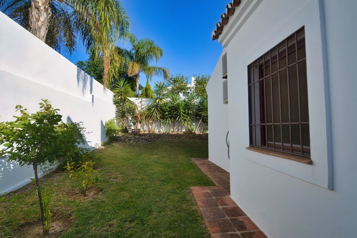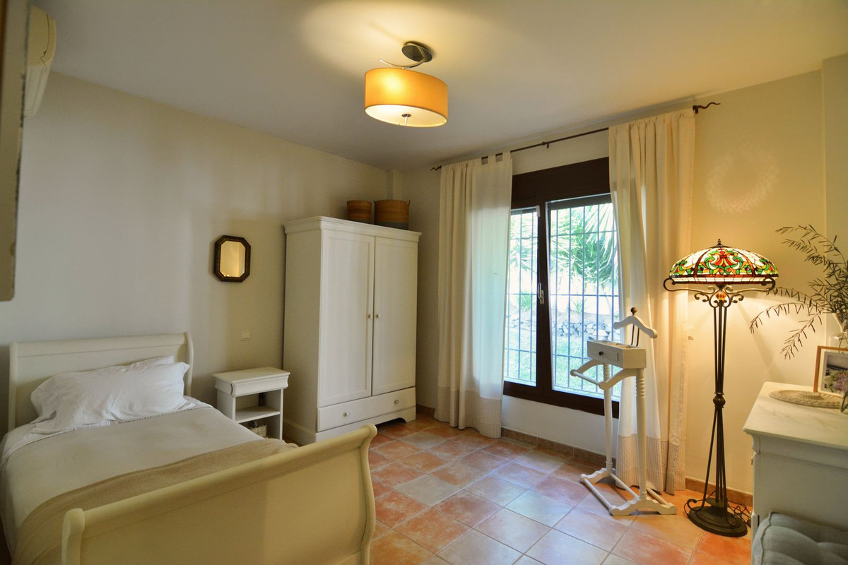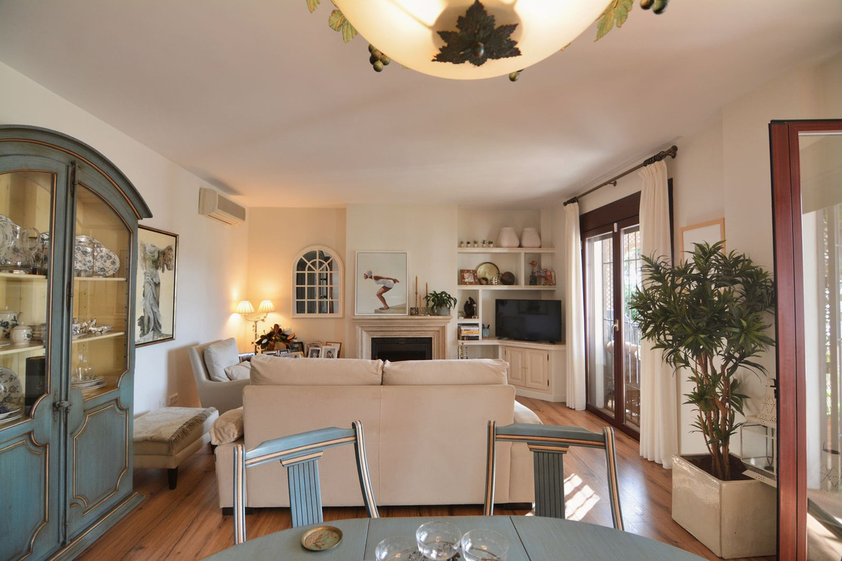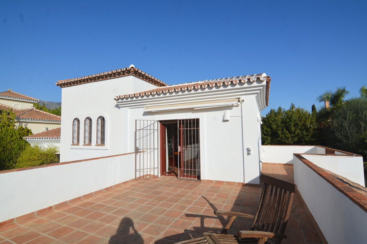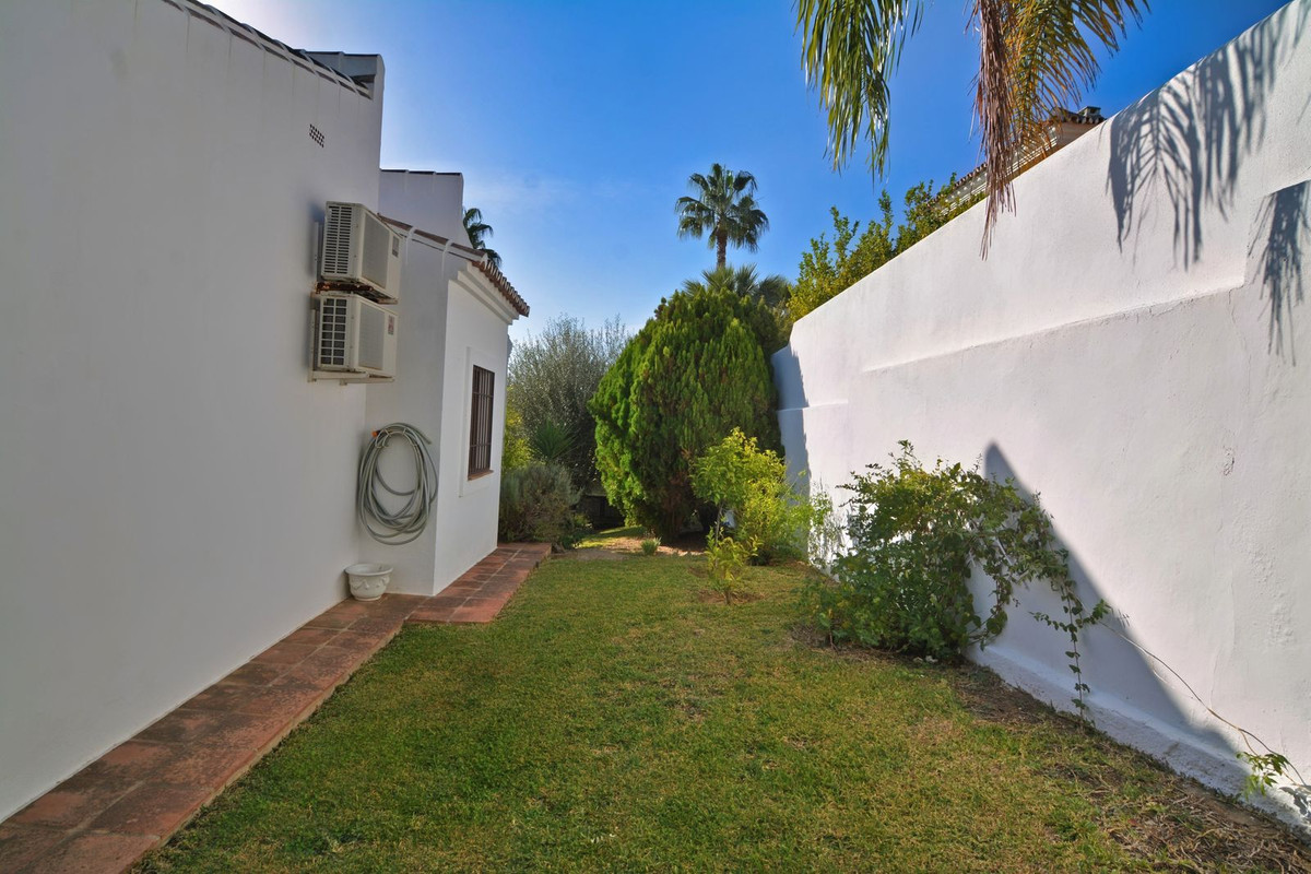 De woning staat op een perceel van 858 m² met een volgroeide tuin en een privézwembad, perfect om te genieten van het zonnige klimaat van de Costa del Sol. Op de begane grond vindt u een ruime en lichte woonkamer met directe toegang tot de overdekte veranda, waar u heerlijk kunt ontspannen en buiten kunt zitten. De aparte keuken is ruim en functioneel, met toegang tot een charmant terras aan de achterzijde, ideaal voor een ontbijt in de zon. Op deze verdieping bevindt zich ook een gastentoilet.