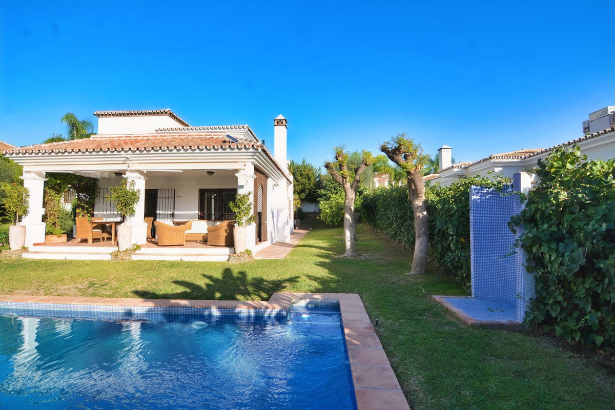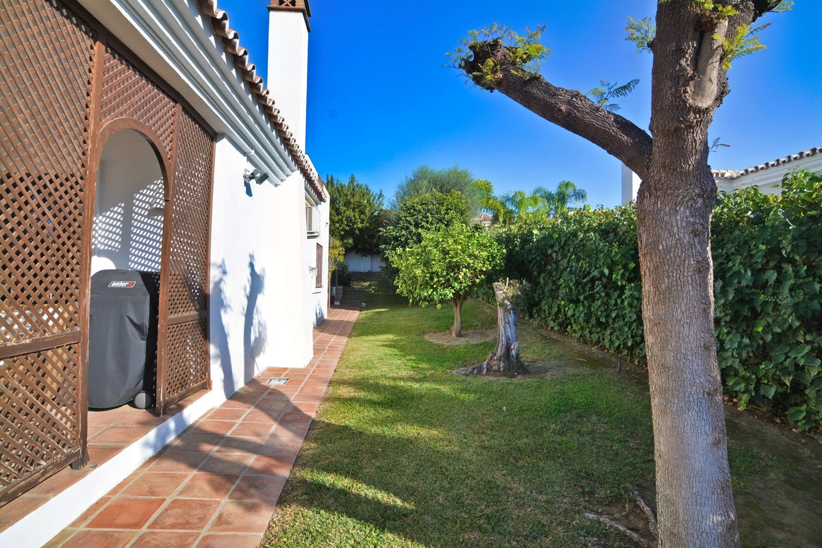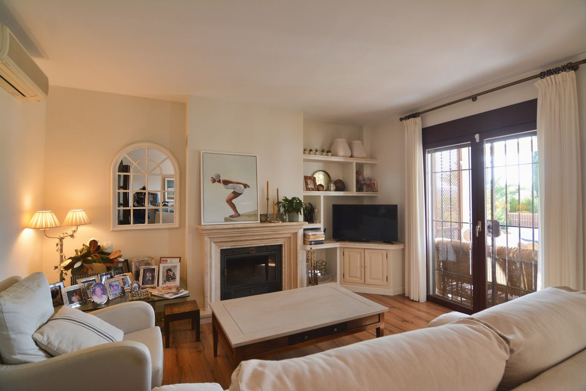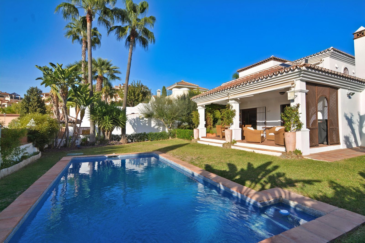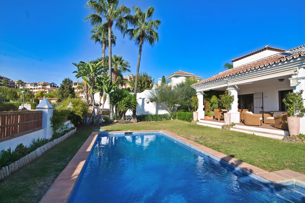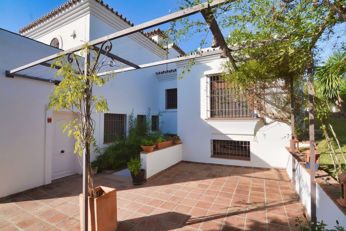 De woning staat op een perceel van 858 m² met een volgroeide tuin en een privézwembad, perfect om te genieten van het zonnige klimaat van de Costa del Sol. Op de begane grond vindt u een ruime en lichte woonkamer met directe toegang tot de overdekte veranda, waar u heerlijk kunt ontspannen en buiten kunt zitten. De aparte keuken is ruim en functioneel, met toegang tot een charmant terras aan de achterzijde, ideaal voor een ontbijt in de zon. Op deze verdieping bevindt zich ook een gastentoilet.