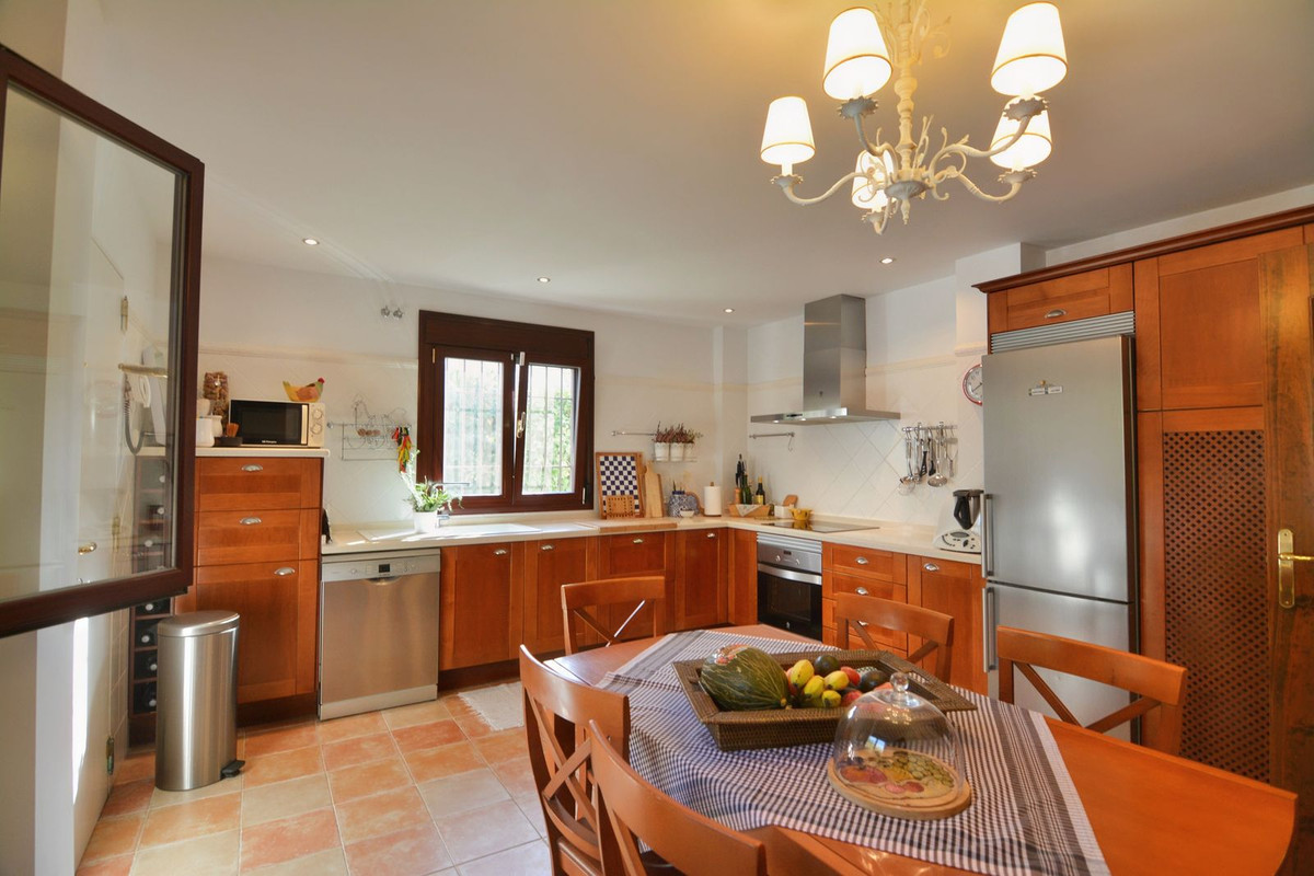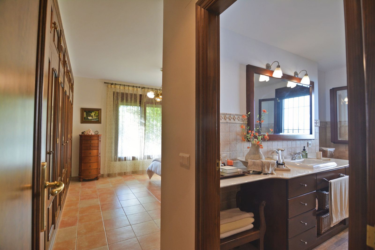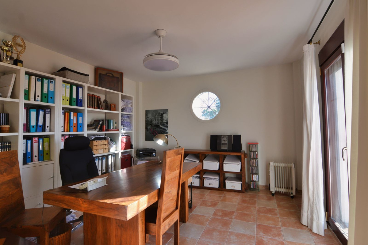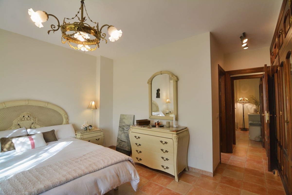 Op de bovenverdieping valt de hoofdslaapkamer op met zijn grote raam en en-suite badkamer. De andere drie slaapkamers zijn licht en ruim, waarvan er één momenteel in gebruik is als kantoor en beschikt over een spectaculair privéterras van 40 m² met open uitzicht op de tuin, het zwembad en de bergen – de perfecte plek om te genieten van adembenemende zonsondergangen. Deze ruimte is voorzien van water- en elektriciteitsaansluitingen, waardoor deze eenvoudig kan worden omgebouwd tot extra woonruimte.