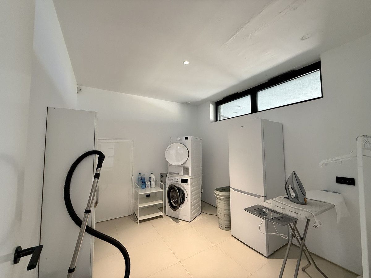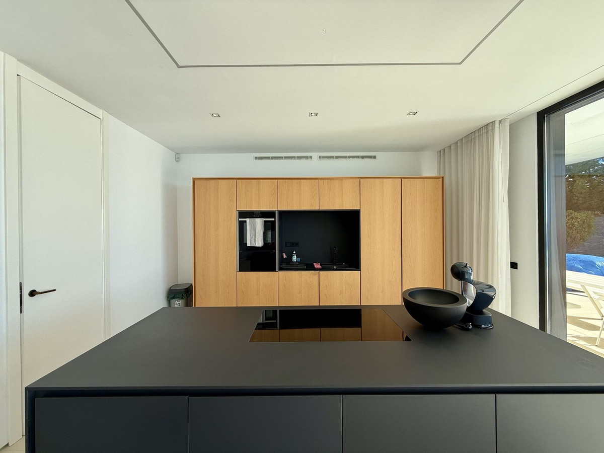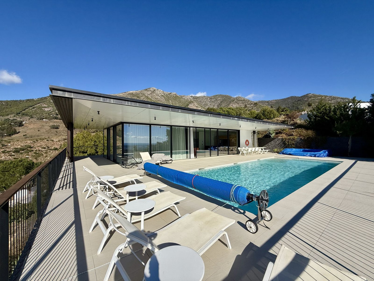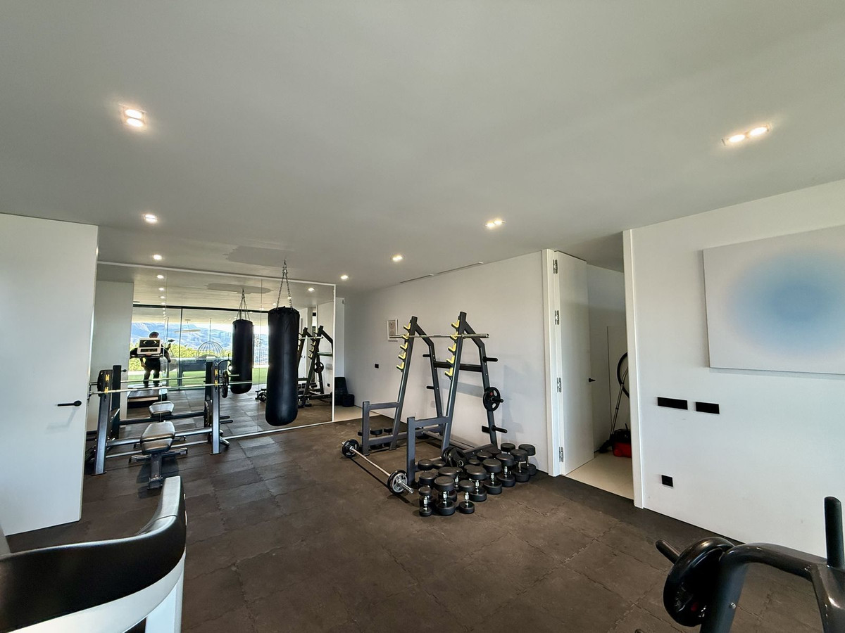 The home delivers panoramic sea and mountain views, visible from multiple vantage points. Inside you'll find a fully fitted kitchen, ample built‑in wardrobes, a covered terrace, a private terrace, a games room, a gym, storage and utility rooms, and a basement. Several bedrooms enjoy ensuite bathrooms, and the property is equipped with double glazing for comfort and efficiency. Parking is private and secure, and the villa includes practical features such as drinkable water supply and photovoltaic solar panels, combining luxury with sustainability. The furniture is optional, offering flexibility for buyers.
