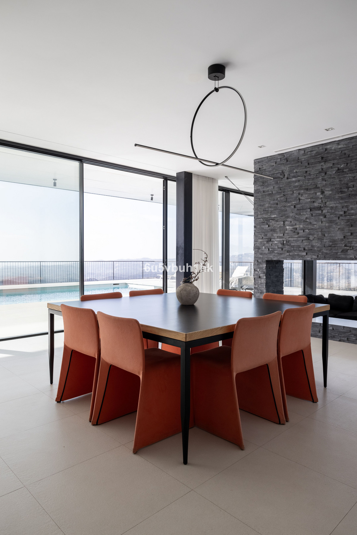 Een van de meest opvallende kenmerken van deze villa is het uitzicht op het grote zwembad vanuit binnen. Het zwembad biedt volledige privacy en een prachtig uitzicht op zee, met voldoende ruimte voor grote gezelschappen of families. Waar u zich ook bevindt op het overdekte uitkijkplatform rondom de villa, u kunt genieten van het spectaculaire uitzicht en de rust.