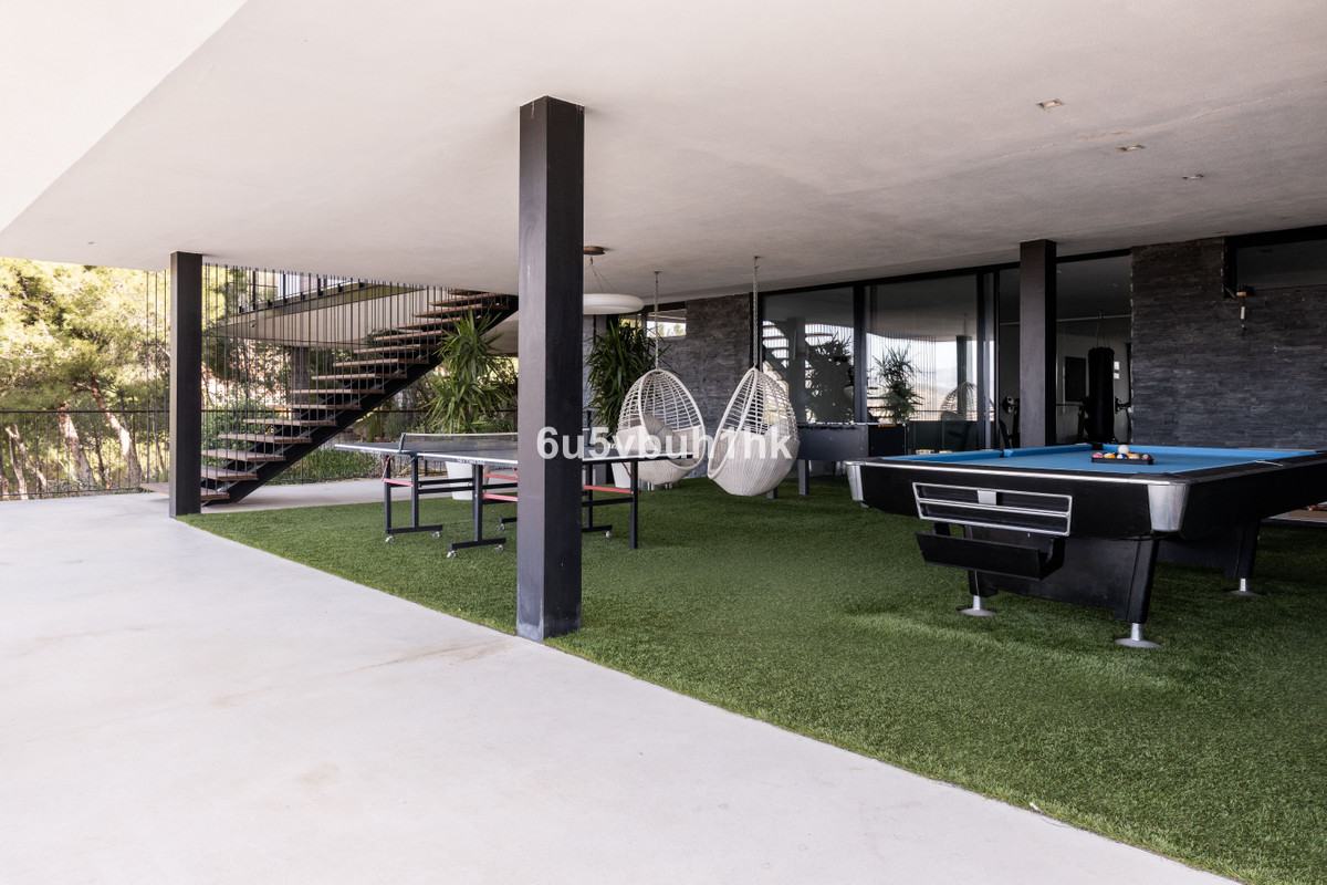 Het huis integreert naadloos in de omgeving, niet alleen qua ontwerp en adembenemende uitzichten, maar ook op het gebied van energie-efficiëntie en duurzaamheid. De ruime, kruisventilatie in het hele huis zorgt voor natuurlijke bescherming tegen de hitte. Grote verticale en horizontale zonwering voor de ramen voorkomt direct zonlicht. Groene energie, opgewekt door zonnepanelen op het dak, zorgt overdag voor zelfvoorziening. De airconditioning en vloerverwarming worden aangedreven door zeer efficiënte warmtepompen.