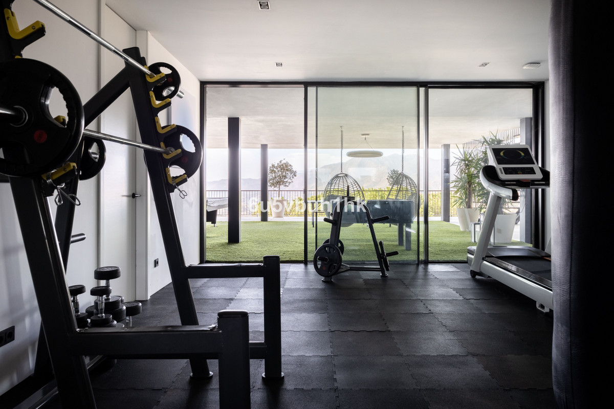 De villa heeft een totale bebouwde oppervlakte van 916 m² en biedt daardoor veel ruimte, zowel binnen als buiten. Het interieur is zorgvuldig ontworpen met hoogwaardige afwerkingen en oog voor detail. De open indeling van de leefruimtes zorgt voor een naadloze overgang tussen de keuken, eetkamer en woonkamer, perfect voor het ontvangen van gasten. De fitnessruimte, de bioscoopkamer en de servicevertrekken bevinden zich op de benedenverdieping, evenals de buitenfoyer. Bij binnenkomst via de imposante houten trap in het midden van het huis, voelt u direct de grandeur. In de woonkamer is er volop ruimte voor vele gezellige avonden op de op maat gemaakte bank voor de grote open haard. Elk meubelstuk, elke lamp en elk kunstwerk is zorgvuldig gekozen om een warme sfeer te creëren, van de honingkleurige eikenhouten accenten tot de grote glazen schuifdeuren die tegelijkertijd een gevoel van verbondenheid met de natuur geven.