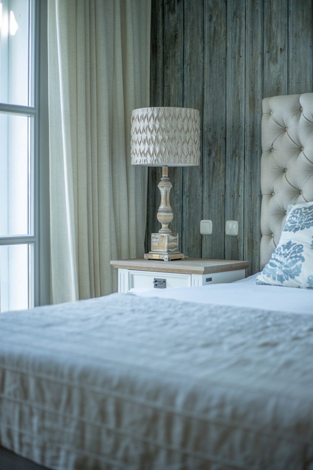 De woning is toegankelijk via een ruime hal met veel daglicht. Vanuit hier bereikt u aan de linkerkant een slaapkamer met een tweepersoonsbed en een eigen badkamer met douche en ligbad. De slaapkamer heeft kamerhoge ramen die zorgen voor veel natuurlijk licht, en is tevens voorzien van een bureau en een televisie.