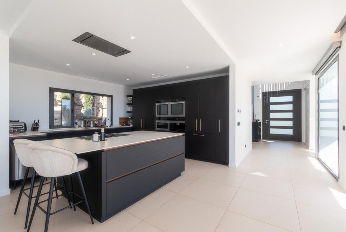 De villa beschikt over vier ruime tweepersoonsslaapkamers, elk met oog voor detail en stijl, en vier volledig uitgeruste badkamers, afgewerkt met hoogwaardige materialen. Het interieur is licht en luchtig, mede dankzij grote ramen van vloer tot plafond die een adembenemend uitzicht bieden op de Middellandse Zee en de omliggende bergen.