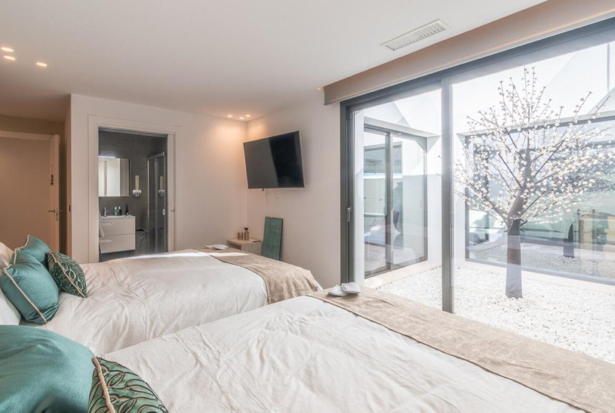 Buiten imponeert de woning met een prachtig privézwembad, royale, zonovergoten terrassen en fraai aangelegde tuinen, perfect om gasten te ontvangen of te ontspannen in de Andalusische zon. De villa beschikt tevens over een eigen parkeerplaats, een beveiligingssysteem en alle voorzieningen die nodig zijn voor een werkelijk luxueuze levensstijl.