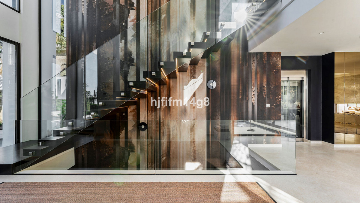 De villa beschikt over vijf ruime slaapkamers, elk met een eigen en-suite badkamer, plus twee extra gastentoiletten. Grote ramen van vloer tot plafond laten veel natuurlijk licht binnen en bieden een spectaculair uitzicht op de golfbaan en de vallei. De naadloze overgang tussen binnen- en buitenruimte creëert een lichte en luchtige sfeer, ideaal voor zowel het dagelijkse mediterrane leven als voor elegant entertainment. Een privélift verbindt alle verdiepingen en de woning is volledig rolstoelvriendelijk, waarbij verfijnd design gecombineerd wordt met praktische bruikbaarheid en toegankelijkheid.