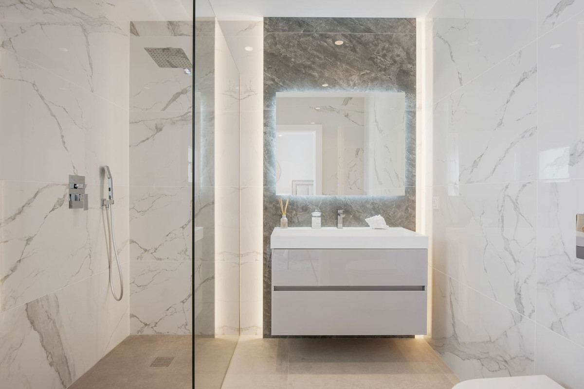 Zwembadniveau - (inclusief garage) 164m2 met twee slaapkamers (hoogwaardige en-suite badkamers en inbouwkasten), thuisbioscoop, speelkamer, allemaal met toegang tot het zwembadterras.